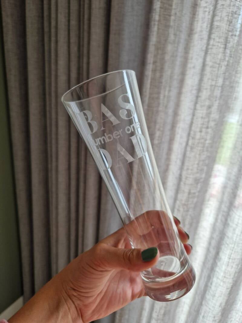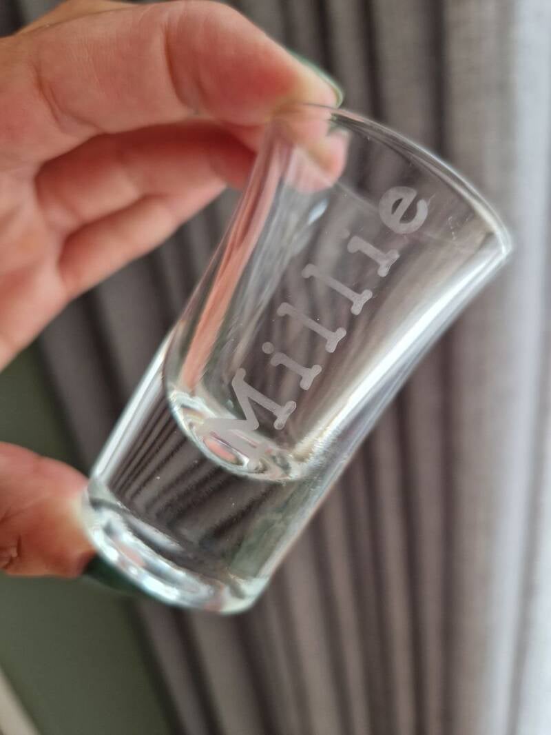 Op alle glazen, behalve het shotglaasje, is het mogelijk de naam te combineren met extra tekst. Denk hierbij aan een speciale datum of een leuke spreuk. Na de bestelling zal ik contact met je opnemen om de opdruk te bespreken en naar jouw wens te maken. Ook krijg je van te voren een voorbeeld van de opdruk te zien, voordat het glas wordt gegraveerd.